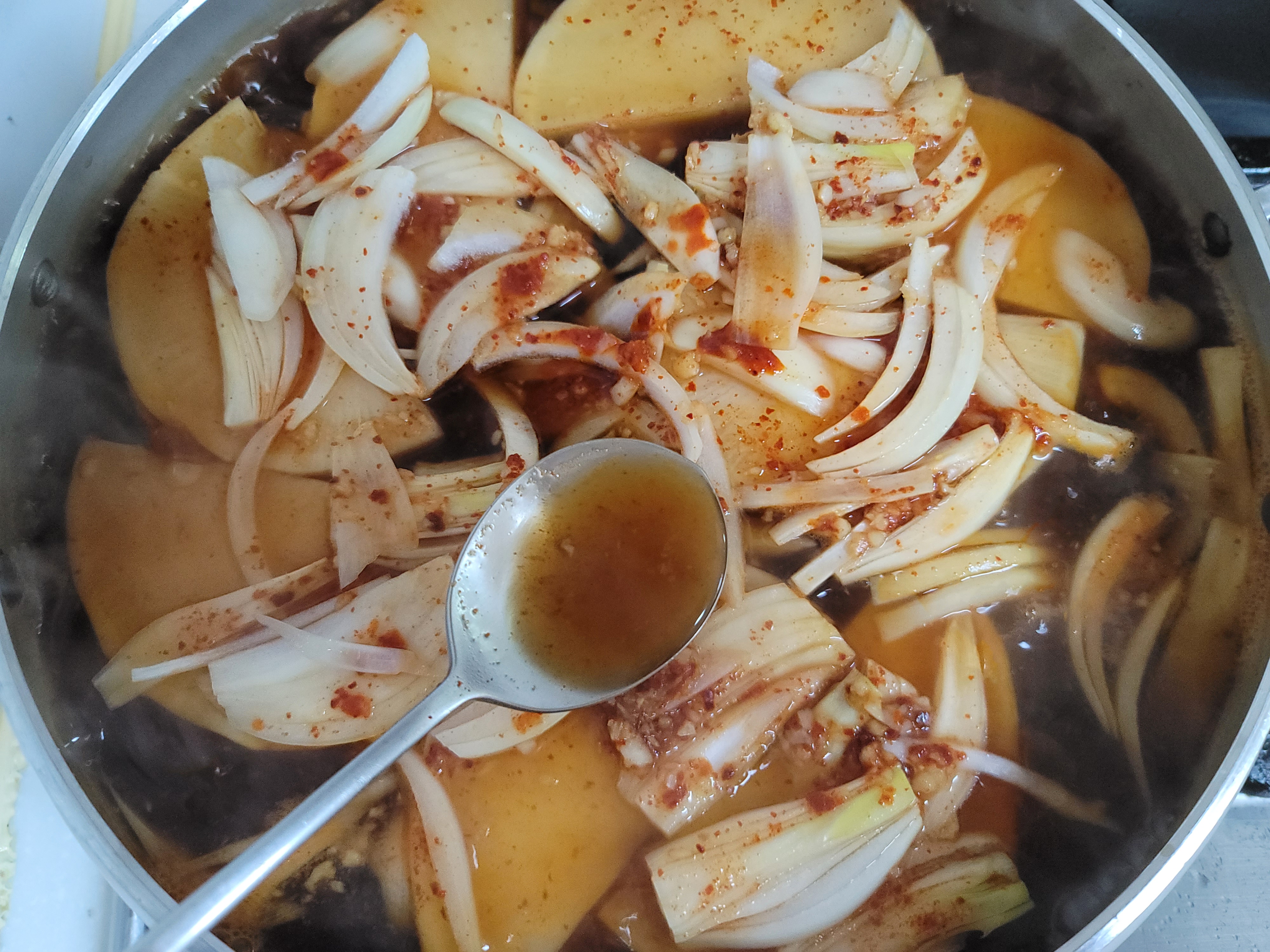 뚜껑을 열고 중약불에서 20분간 조려줍니다.